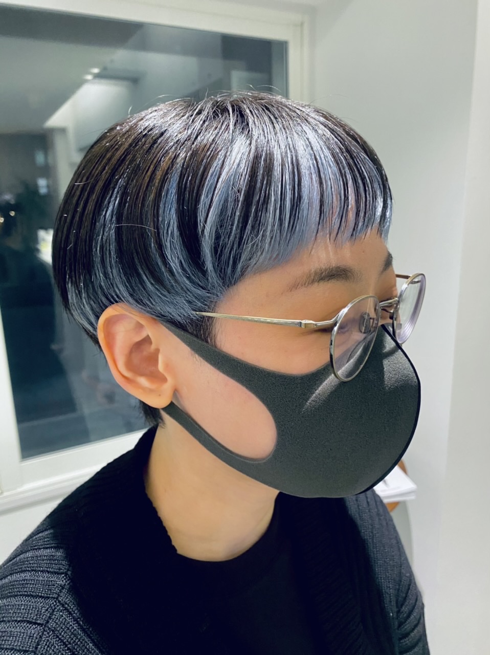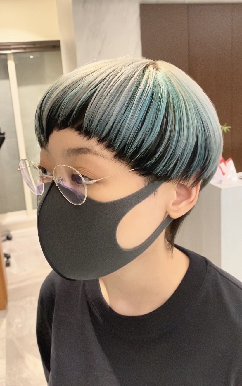 顔周りの内側をブリーチしクリアなブルーをオン☆