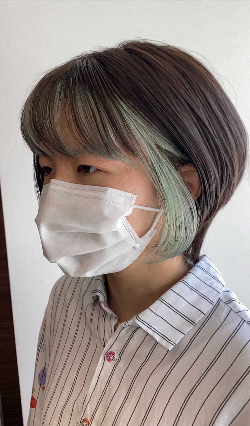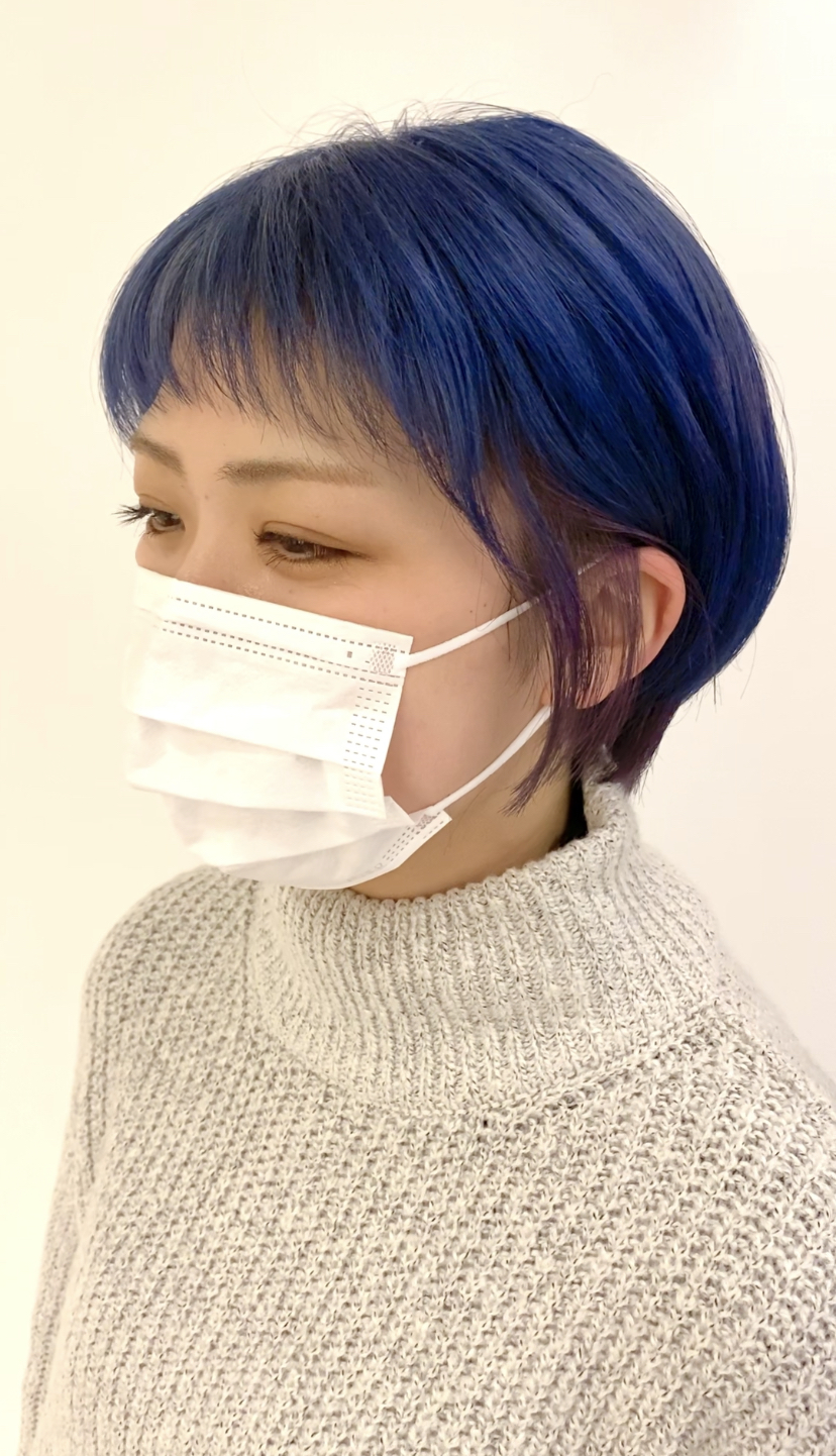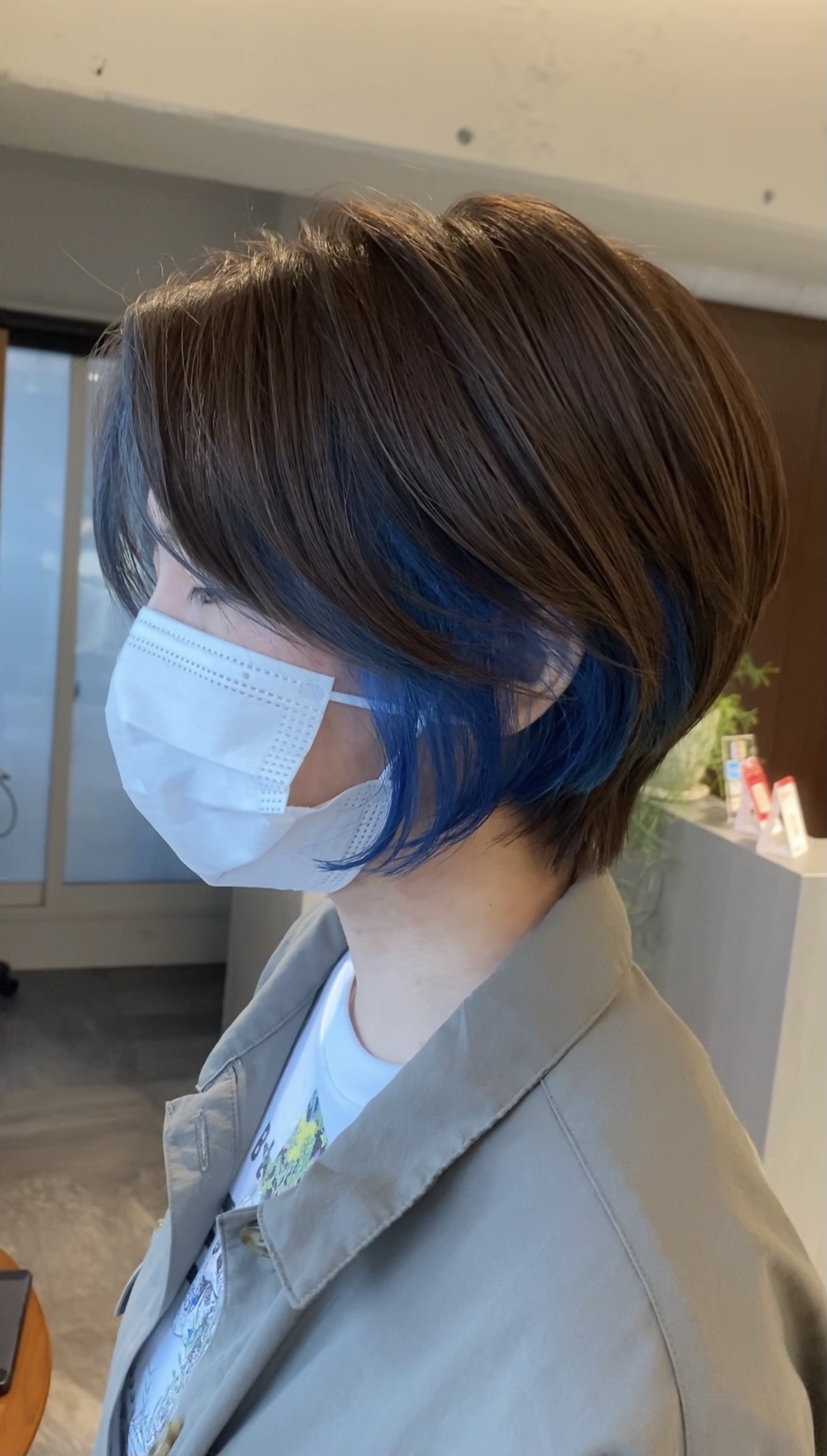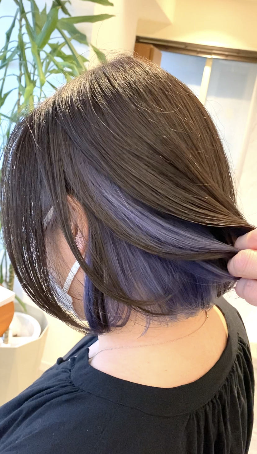 ボブスタイルの内側にブルーベリーカラーを施しました☆