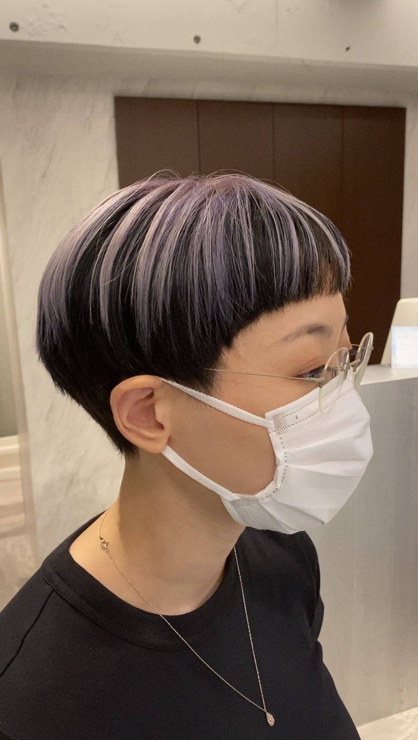 内側のもみあげからえりあしにかけてレッドバイオレットを入れてみました☆