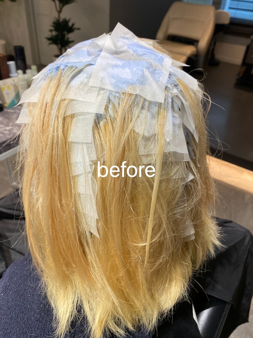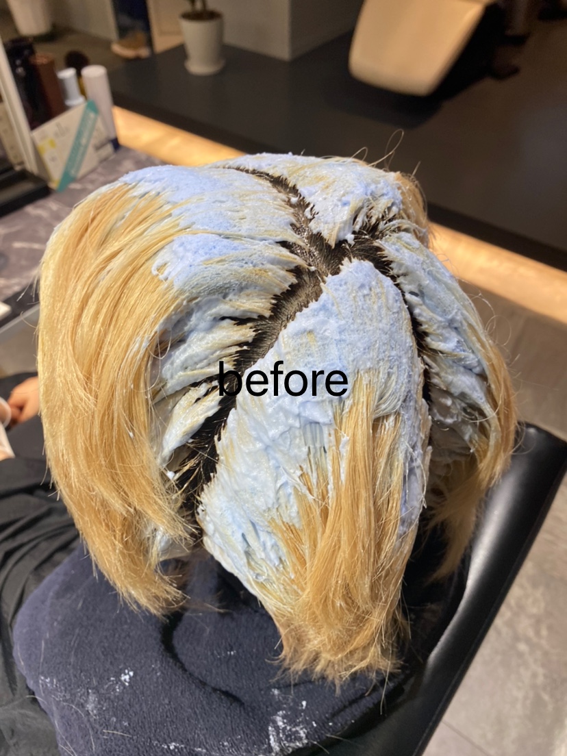 ブリーチで前回染めた色の残留を取りベースを整えることで綺麗なバイオレットに染まりました☆