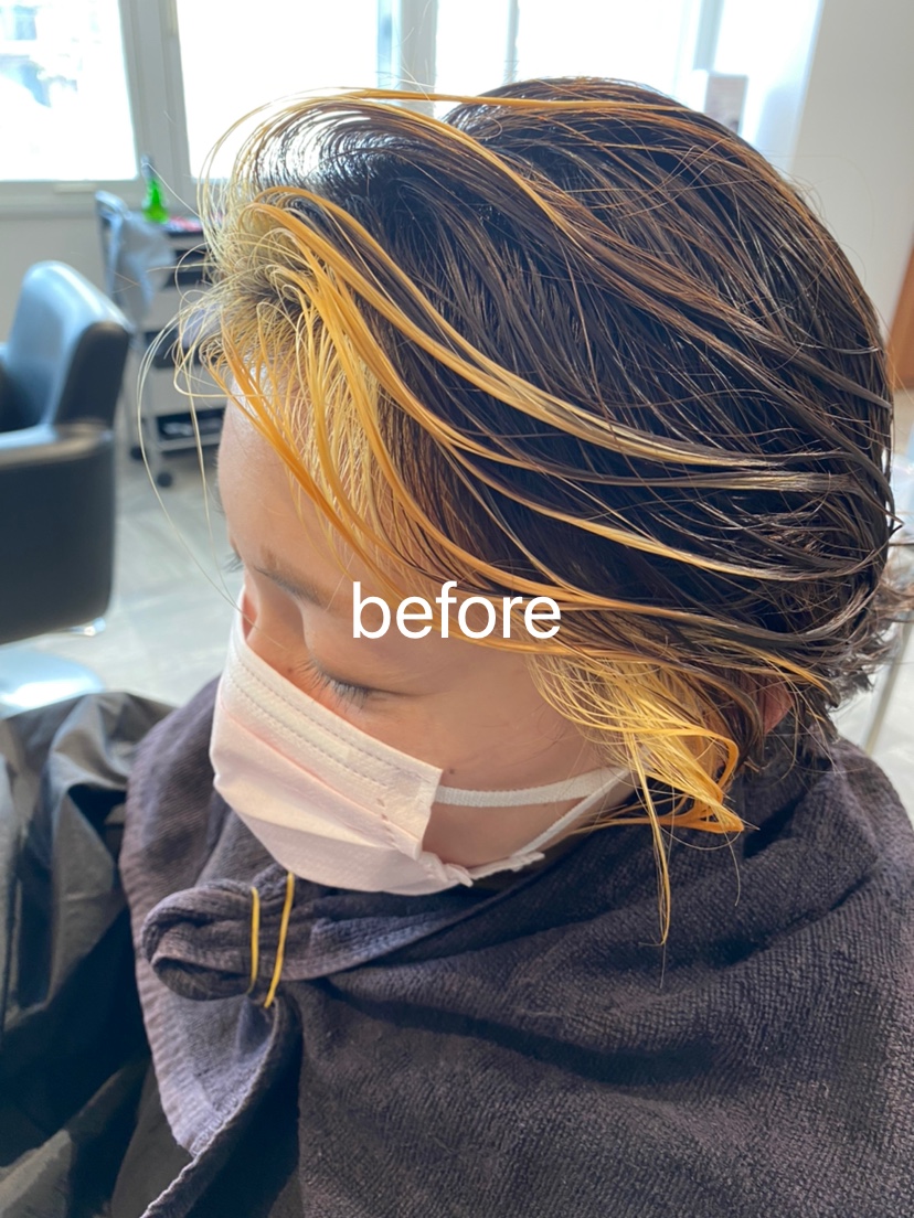 1回ブリーチをしオレンジ色をのせました☆