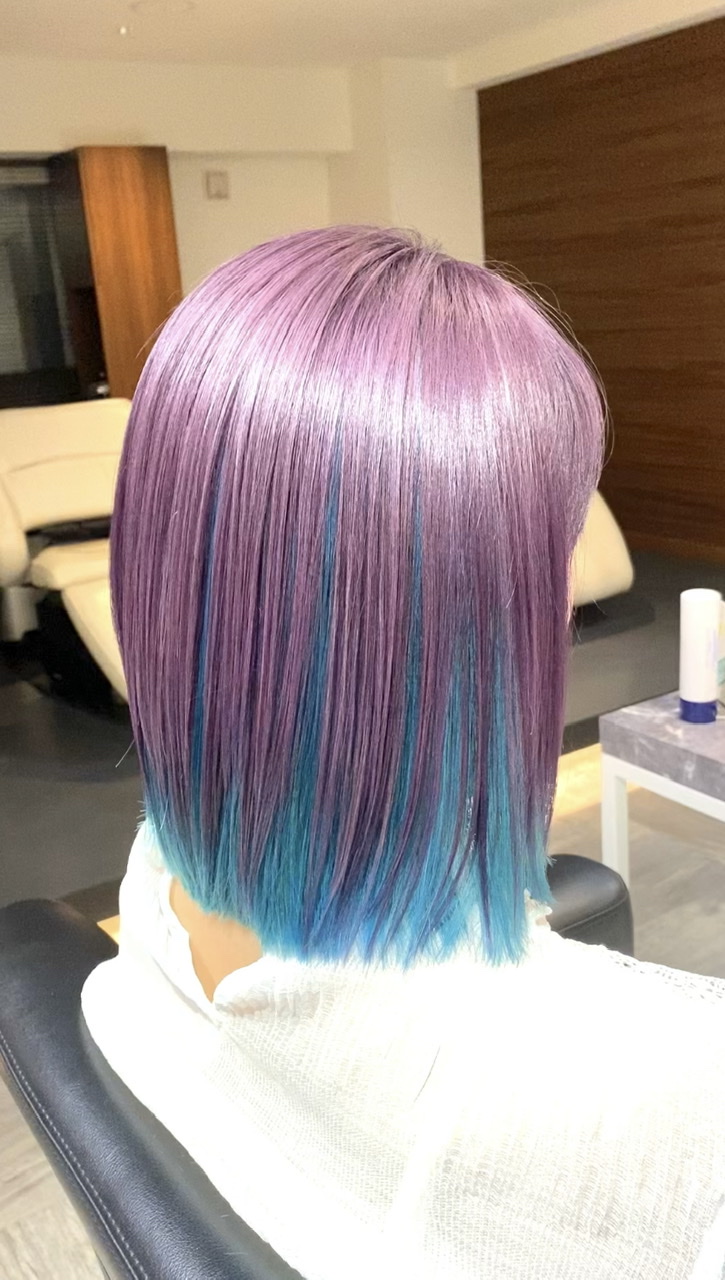 髪の内側をブリーチしてブルーバイオレットカラーに仕上げてみました♪