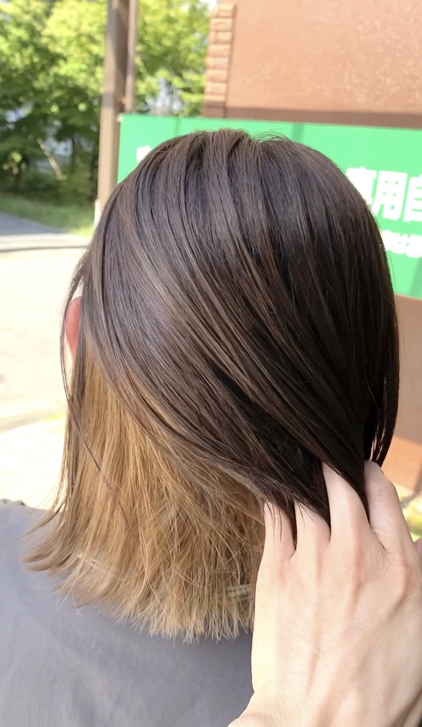 サイド~バックの内側にブリーチ施し表面のお色とコントラストをつけました☆