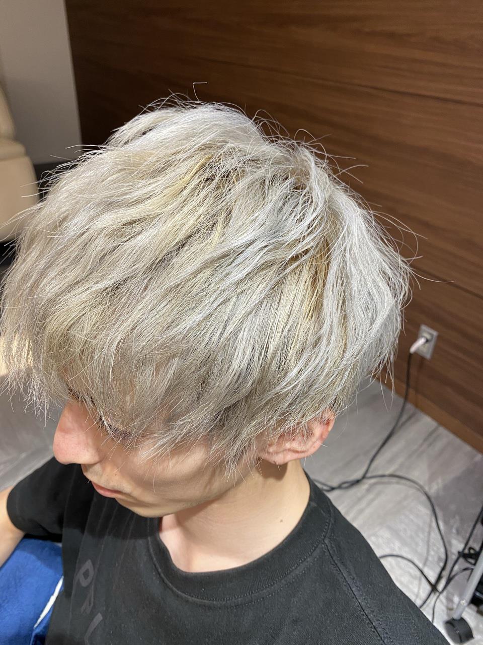 こんにちわ、大谷です!今回はメンズのお客様のハイトーンカラーです。すでに数回のブリーチベースでのご来店でした。前回緑色の塩基性カラー(ヘアマニキュアの様なもの)で、緑色に残留していたところからのスタートです!ブリーチや、ヘアマニキュアなどの"色素"を落とすお薬を使ってベースを整え、アッシュグレーに大変身しました☆グレーやベージュなどの「無彩色カラー」はどの時期にもどんな服装にも合う万能カラーです!若干の緑の残留や、退色後のブリーチ毛特有の"黄色味"を出さない為に最初は少し紫味のあるグレーにお薬を調合しました!退色中、退色後も楽しんでいただける様なヘアカラーをご提案する事を常に心がけております!Lapasa〒064-0825北海道札幌市中央区北5条西28丁目1-8ノーザンウエスト28 2F営業時間平 日 10:00~19:00日・祝 10:00~18:00定休日 火曜・第三月曜TEL 011-676-7718